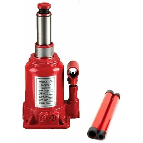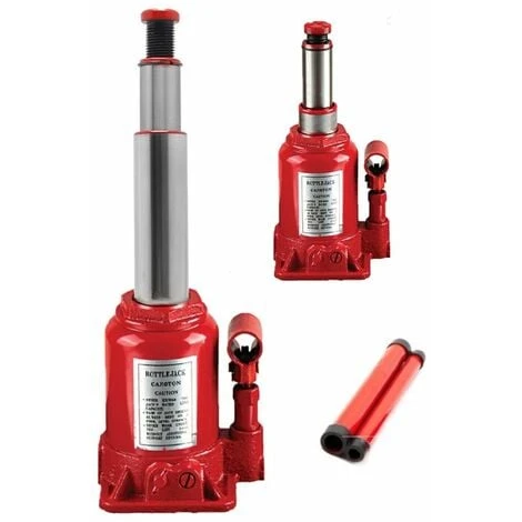 Sollevatore idraulico a bottiglia tipo double ram. Dotato di doppio pistone vite.