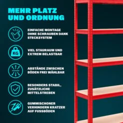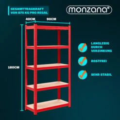 Questo scaffale verniciato a polvere dispone di 5 ripiani in MDF (fibra a media densità). La capacità di carico per ripiano è 175 kg (ogni scaffale 875 kg)