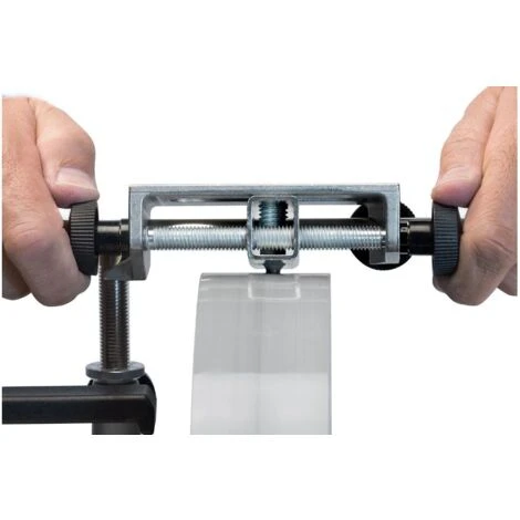 La punta in diamante può facilmente attraversare la mola girando in modo alternato le due manopole con entrambe le mani. Grazie all’avanzamento controllato, è possibile ottenere una mola uniforme e piatta senza sporgenze.