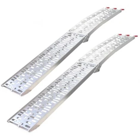 Le rampe sono in alluminio leggero di alta qualità e, grazie alla loro ampia superficie e alla profilatura resistente, garantiscono stabilità anche in zone umide o scivolose. Caricare e scaricare non sarà più così difficile: potrete trasportare in tutta rapidità quad, moto, ciclomotori e altro in un rimorchio o in un furgone. Scale o altri ostacoli sono facilmente superabili. In caso di non utilizzo delle rampe per quad, potrete conservarle senza troppo ingombro, poiché hanno una forma rettilinea e sono pieghevoli .
