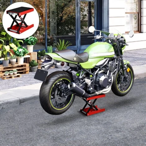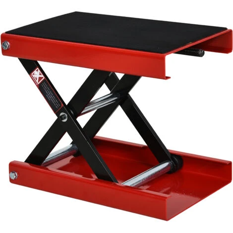 Questo cavalletto alza-moto DURHAND è uno strumento pratico, indispensabile in ogni officina. Realizzato in acciaio rifinito con vernice rossa e nera, è composto da una maniglia a T, da due braccia di sollevamento e da una piattaforma rivestita in gomma antiscivolo e antigraffio. Usando la maniglia a T puoi regolare facilmente l’altezza del piano di appoggio e, una volta terminato il lavoro, puoi ripiegare il cavalletto su se stesso: occuperà pochissimo spazio.