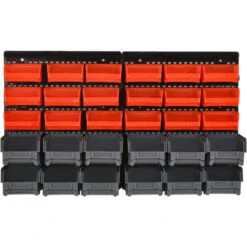 - • Portaoggetti a cremagliera per piccoli attrezzi con 2 pannelli e 30 contenitori in due diverse misure, ideale per officine, garage e postazioni domestiche per il fai-da-te