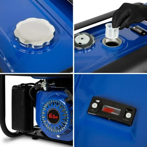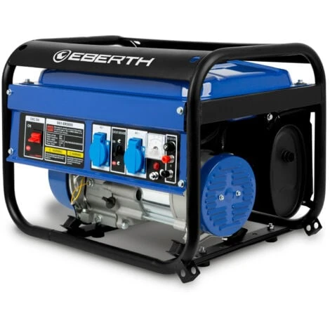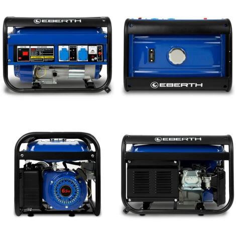 - POTENTE: Il generatore di corrente EBERTH è alimentato da un motore a benzina 4 tempi 1 cilindro raffreddato ad aria da 6,5 ??CV / 4,8 kW con protezione a basso livello di olio e cilindrata di 196 cc, sempre pronto per lavvio e può essere avviato con poco sforzo utilizzando un tiro di cavo