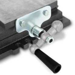 - Pour que les axes X et Y puissent être déplacés sans effort, la table croisée est équipée de deux filetages précis en acier qui peuvent être tournés par des leviers faciles à manier. Les filetages et les surfaces de guidage de la table doivent être huilés de temps en temps