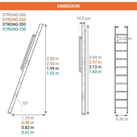 – Le staffe consentono di fissare la scala all’altezza desiderata.