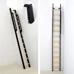 – Quando la scala non è in uso, si può ripiegare contro la parete e diventa molto discreta.