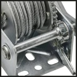 Fune metallica senza vorticeGancio di carico di sicurezza con cerniera di sicurezzaIl coperchio di sicurezza impedisce che il carico si stacchi involontariamenteBlocco di ritorno per arrestare in modo sicuro la corda e il caricoLa presa morbida sulla manovella garantisce un lavoro piacevoleFacile montaggio grazie alla piastra di montaggio con fori