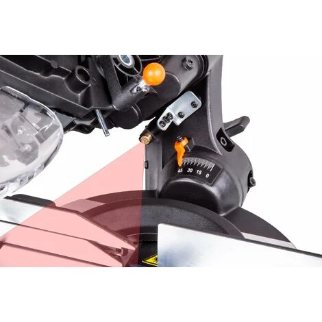 - Angoli di taglio facilmente regolabili senza attrezzi. Inoltre, è possibile utilizzare angoli obliqui preimpostati sul tavolo della sega. Impostazione rapida e precisa degli angoli di 0 °, 15 °, 22,5 °, 30 ° e 45 °. Grazie al blocco del mandrino, le lame della sega sono facili e veloci da sostituire.