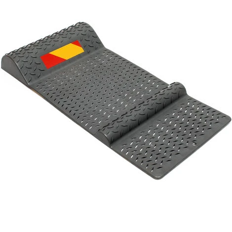 Il fermaruota è realizzato in plastica (polipropilene) ed ha una superficie di 52,8 x 25 cm (LxP). Grazie alla base autoadesiva, può essere facilmente incollato al pavimento, ma può anche essere avvitato, grazie ai fori presenti sul tappetino fermaruota (materiale di montaggio non incluso).