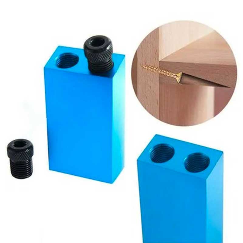 Realizzata in lega di alluminio, la dima Angle Drilling è robusta e durevole. Le sue punte speciali per il legno consentono di realizzare fori perfetti. Due tacche sulla dima facilitano l’inserimento di punte di diverse dimensioni. La dima di foratura angolare può essere utilizzata su tutti i tipi di legno.