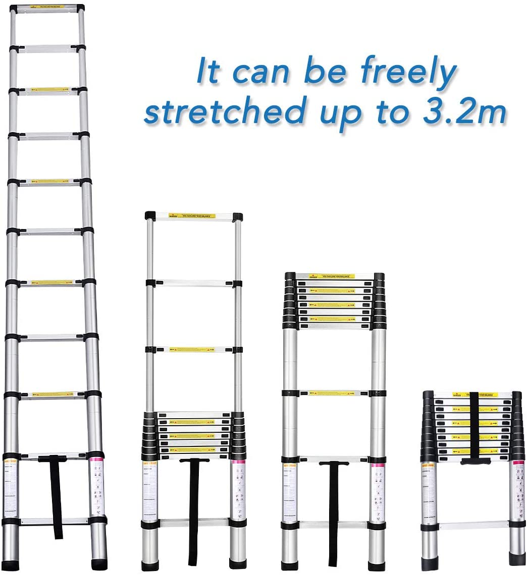 ★ Da 78 cm a 3,2 m con 11 pioli, scala telescopica, portatile e patica, facile da posizionare.
