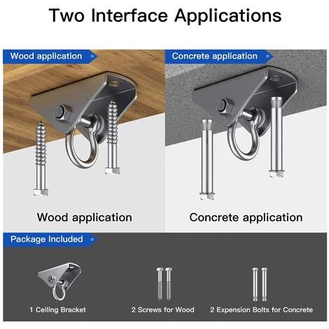 •Questo pacchetto include 1 staffa a soffitto, 2 viti per legno, 2 bulloni ad espansione.