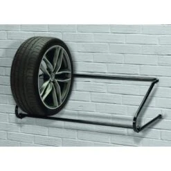 Portagomme realizzato in tubolare colore nero da applicare al muro F 1 struttura in acciaio verniciato nero portata massima 100 kg adatto per 4 gomme.