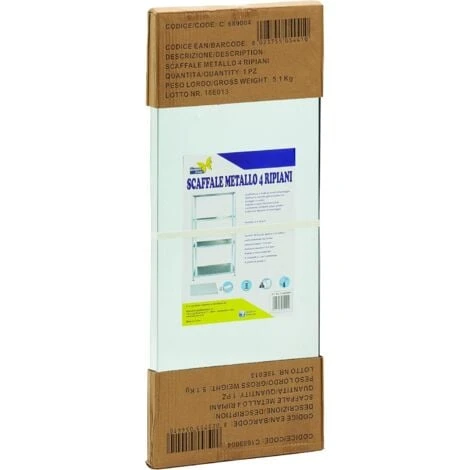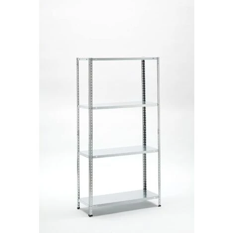 Scaffalatura a bullone in kit di montaggio Struttura in metallo galvanizzato con fissaggio a bulloni Imballo in nylon termoretraibile contenente montanti, piani, piedini, bulloni ed istruzioni di montaggio. Prodotto a 4 ripiani Misure: H 147 x L 75 x P 30 cm Metallo galvanizzato Portata: 45 Kg per ripiano con carico uniformemente distribuito Spessore ripiani: 0,4 mm Spessore montanti: 0,5 mm Bulloni a testa tonda M6 4 montanti a L per confezione 4 piedini in plastica