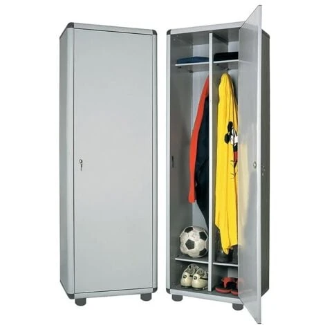 tArmadi Spogliatoio Sporco Pulito 170/1.50 SPtIn resina con piedini, divisorio interno, piano superiore, appendiabiti, con chiave. Colore grigio. Dimensioni L59xP39xH175 cm.