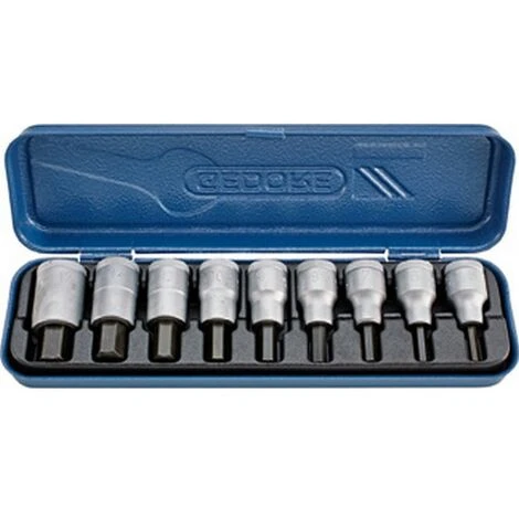 Contenuto: 9 inserti cacciavite per viti interne a 6 spigoli 5. 6. 7. 8. 9. 10. 12. 14. 17 mm.