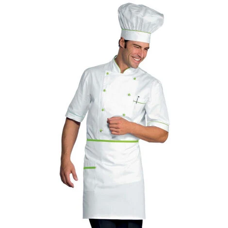 - Giacca bianca con piping nero su colletto, taschino e polsini