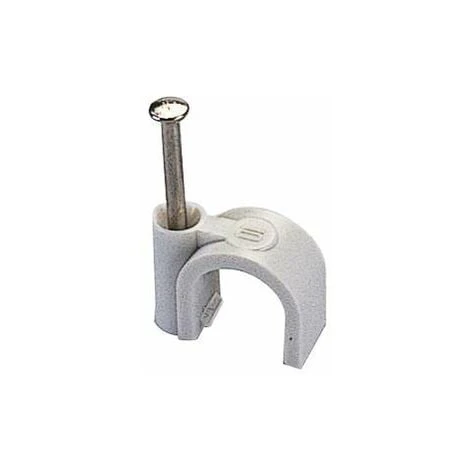 50 graffette fissacavo per cavo tondo diametro 10 mm. Graffette in materiale termoplastico. Chiodi già infilati, in acciaio temprato e nichelato. Colore: grigio.