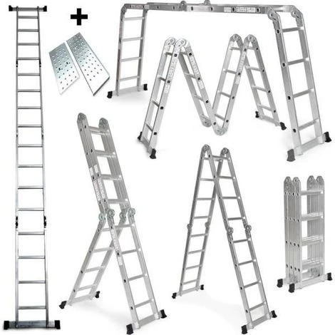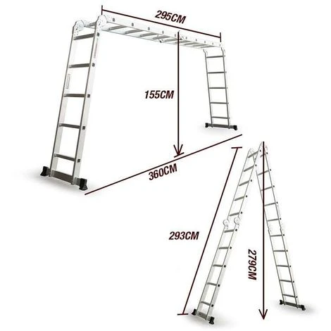 La scala multifunzione in alluminio 6 e 1 è lunga 575 cm, con design antiscivolo del pedale per proteggere la tua sicurezza. Alle due estremità della scala sono presenti cuscinetti in gomma antiscivolo, che la rendono più sicura e confortevole.
