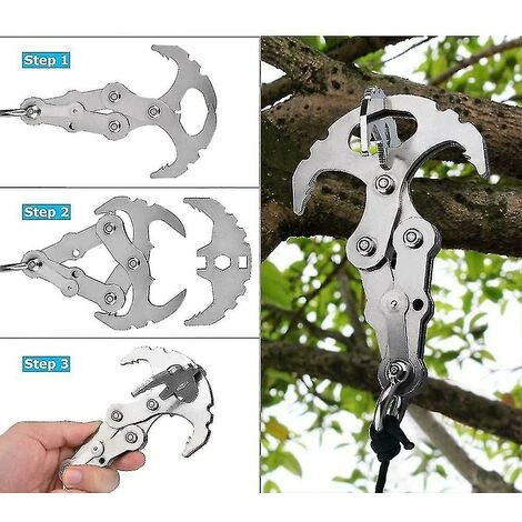 - Viene fornito con un gancio in acciaio inossidabile e una fascetta. Il rampino ha piccole punte sul retro dei ganci per una migliore presa quando si utilizza il rampino come rampino.