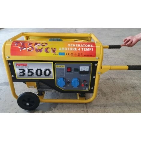 Potenza massima motore: 6,5 HP Tensione/Frequenza: 230 V/50Hz Potenza massima in uscita: 3 KW Autonomia: 12 ore Rumorosità: 90 dB a 7 m Carburante: Benzina Verde Serbatoio: 15 Litri Peso lordo: 40 Kg Dimensione imballo: 610 X 450 X 470 mm Avviamento: a strappo Protezione elettrica: IP23 Massima temperatura ambiente: 40