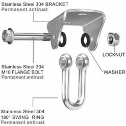 - Fornitura: gancio girevole con 2 ancoraggi per cemento e 2 viti esagonali.