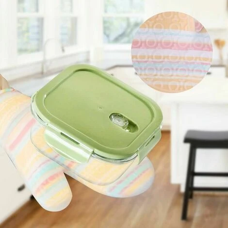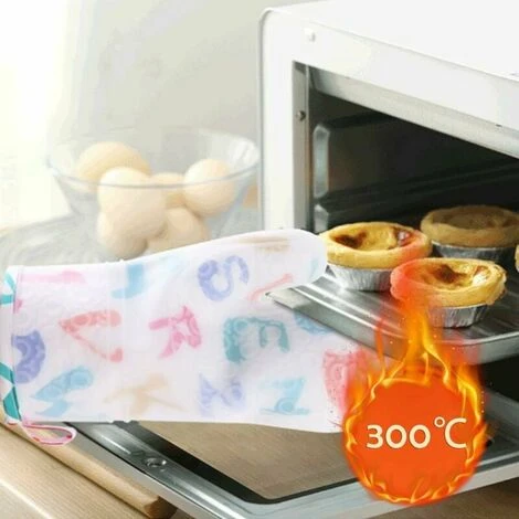 Nuovi guanti da cucina in silicone e cotone La superficie dei guanti isolanti termici è realizzata in silicone trasparente di qualità alimentare, la fodera interna è in cotone con motivi dai colori vivaci, che hanno sia un efficiente isolamento termico che un bell’effetto. Scegli i tuoi guanti da cucina e divertiti ogni volta che cucini, cucini e cuoci alla griglia. Il guanto da cucina da 30 cm protegge il tuo avambraccio dalle sfumature.