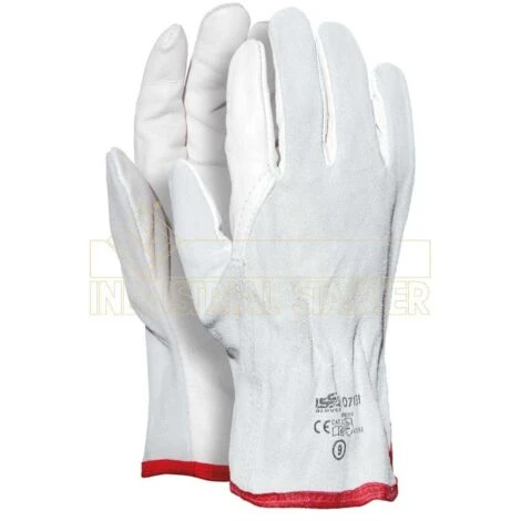 Guanti da lavoro in pelle fiore di vitello bianco orlato con dorso in crosta. L’articolo potrebbe differire dall’immagine in qualche dettaglio e/o nella marca.