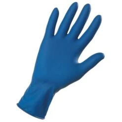 Guanto in LATTICE DI GOMMA NATURALE di colore blue ad alta resistenza non sterile, sottoposto a processo di clorinazione quindi a ridottissimo contenuto proteico (<50µg/g) e senza polvere lubrificante. Ambidestro con bordino, a finitura interna opaca ed esterna microruvida, di spessore e lunghezza maggiorata.
