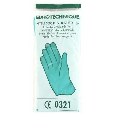 Presentazione: verde Guanti in nitrile taglia XL / 10 EP 5530 guanti acrilonitrile verde cotone di alta qualità floccato guanto di finitura interni ed esterni la gestione e manutenzione in contatto con sostanze chimiche in conformità CE-standard legato EN374-3, EN420 e EN388 Non utilizzare nella manipolazione di oggetti di una temperatura superiore a 50 ° C Manutenzione: risciacquo con acqua limpida e essiccazione naturale, conservare in un luogo asciutto e ventilato tra un uso Questo guanto è un modello di dispositivo di protezione individuale chi sono soggetti alla certificazione CE di esame di tipo 734 rilasciato da SATRA (corpo n ° 0321) performance: Dimensioni: Extra Large Lunghezza: 330 millimetri Larghezza: 150mm Larghezza del palmo della mano: 115 millimetri Spessore: 0,46mm Colore: verde protezione contro chimiche e batteriologiche campi di applicazione: vernice e la pulizia solventi, manipolazione di sostanze chimiche e liquidi comodità industria alimentare offerta e la massima flessibilità durata eccellente impermeabile e aria molto buona destrezza Palm sollievo immerso bracciale liscio standard CE-EN374-3: resistenza alla permeazione Conditionement: 1 paio di guanti in sacchetto individuale