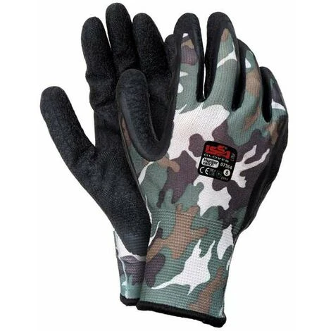 Filo nylon continuo senza cuciture Rivestimento schiuma lattice – Dorso areato Polsino elastico Palmo nero dorso mimetico DPI classe II – EN 388 – Prestazione 2111