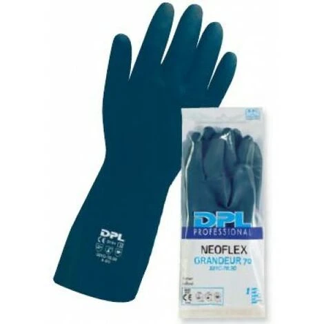 Guanto riusabile in MESCOLA DI POLICLOROPRENE+LATICE DI GOMMA NATURALE alogenato,di forma anatomica per mano destra e sinistra. Felpato internamente, trattamento interno antibatterico.