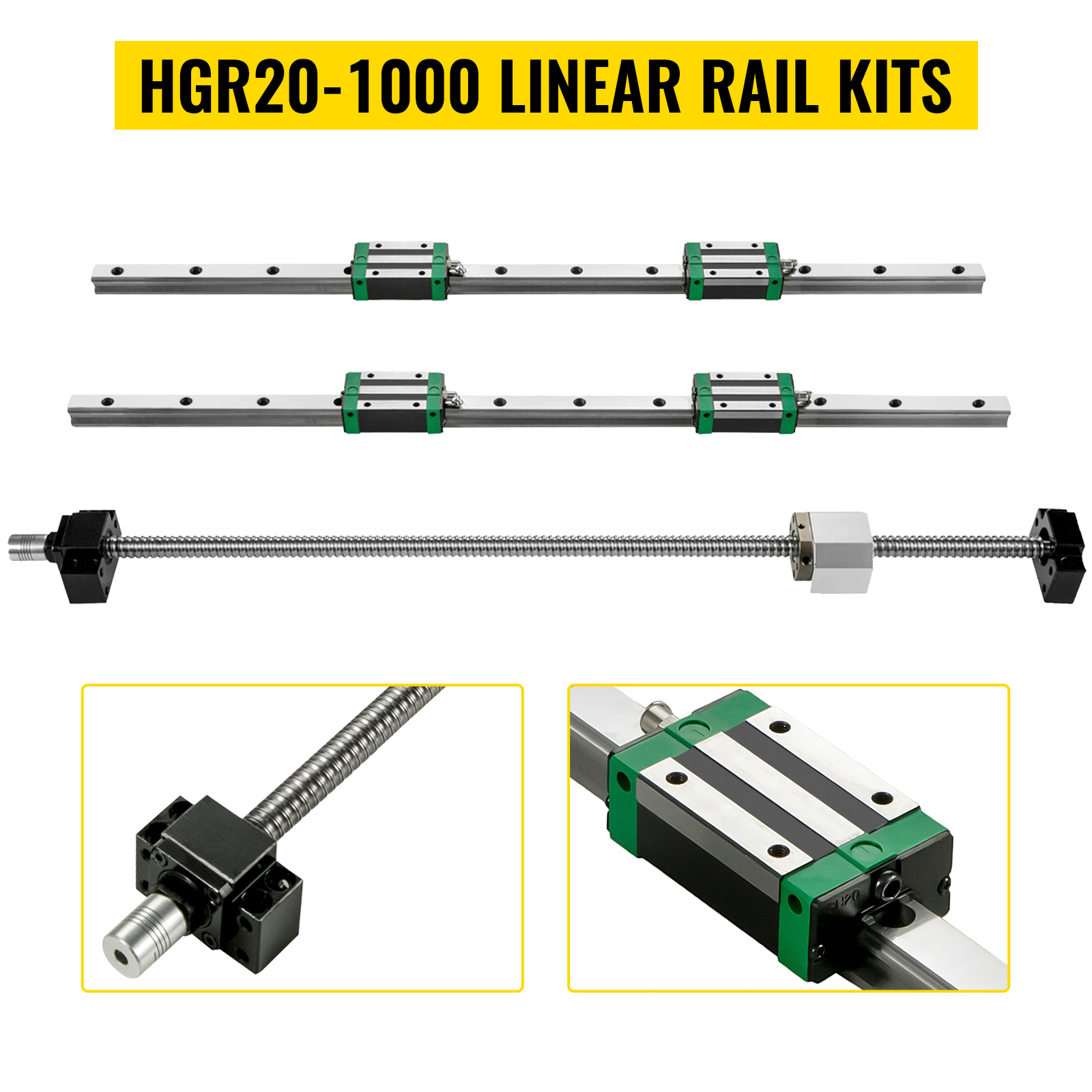 Questa guida lineare è composta da 2 pezzi di alberi rotaia HGR20 lunghi 1000 mm / 39,4″, 4 blocchi e un kit di viti a ricircolo di sfere. Il materiale in acciaio di alta qualità prolunga la durata dell’albero e della macchina. Muoversi dolcemente senza flessione, usura minima e bassa rumorosità.
