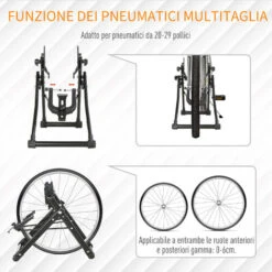 Vuoi cambiare la ruota della tua bici o devi fare manutenzione? Il supporto reggi ruota HOMCOM è perfetto per aiutarti a prenderti cura della tua bicicletta. È adatto per ruote anteriori e posteriori da 20-29 pollici, e grazie al suo design pieghevole si ripone in poco spazio.