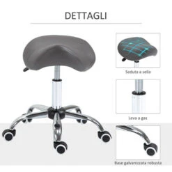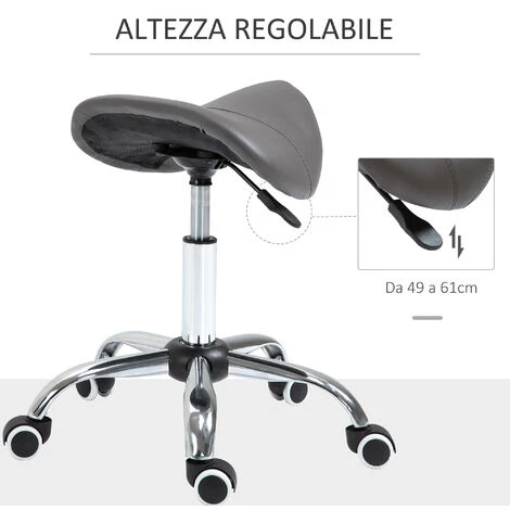 Se cerchi il sostegno giusto per affrontare le tue giornate di lavoro come parrucchiere, nel salone di bellezza o nel tuo studio di tatuaggi questo sgabello HOMCOM è quello che ti serve. La solida base in metallo rinforzato assicura stabilità e resistenza all’uso per molto tempo. Questo sgabello con ruote ha un design ergonomico che ti assicura una postura corretta e con l’altezza regolabile trovi la posizione giusta per te. Rendi il tuo lavoro più confortevole con questo sgabello a sella!
