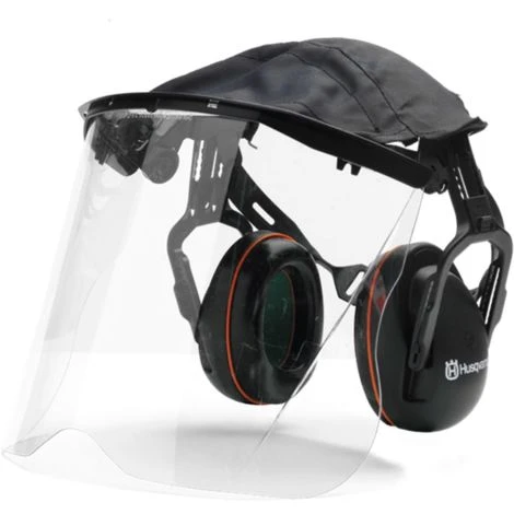 Set cuffie e visiera in plexiglas ideale per lavori con