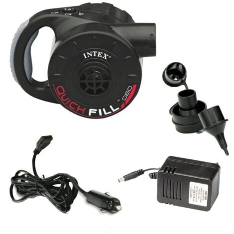 Pompa elettrica ricaricabile compatta dotata di batteria ricaricabile e completa di adattatori per qualsiasi tipo di gonfiabile:canotti, air bed, materassini, piscine per bambini e cavalcabili. Utilizzo e ricarica tramite adattatore per auto a 12 Volt o trasformatore per casa a 220 Volt – 50 Hz.
