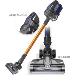 L’aspirapolvere portatile senza filo KESSER con tecnologia ciclonica assicura una potenza di aspirazione costante. Un interruttore supplementare ti dà la possibilità di impostare il funzionamento a ciclo continuo. Dotato di 3 luci LED per la pulizia negli angoli bui. Che si tratti di piccole fessure o di aree difficili da raggiungere in casa, non sarà più un problema con la spazzola elettrica per pavimenti con snodo girevole brevettato. Approfitta di un livello di comfort superiore e scegli le dimensioni dell’aspirapolvere a seconda delle tue esigenze. Il contenitore della polvere può essere svuotato facilmente premendo un pulsante. La potente batteria agli ioni di litio da 2200 mAh fornisce fino a 55 minuti di autonomia e consente di pulire tutta la casa senza dover ricaricare. Con un solo pulsante sull’apparecchio, è possibile azionare i livelli di velocità e l’interruttore On/Off.