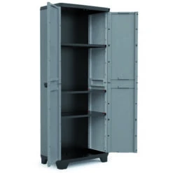 Set armadio alto e basso Keter, dal design moderno in grigio e nero, si adatta ad ogni tua esigenza e spazio. Dotati di ripiani regolabili con portata max 15 kg ciascuno, con maniglie confortevoli grazie alla loro comoda impugnatura, predisposizione per chiusura lucchettata per avere al sicuro i vostri oggetti. Adatti sia per interno che per esterno, resistenti agli agenti atmosferici ed alle intemperie. Dimensioni basso: 68x39x83. Dimensioni alto: 68x39x166 cm.