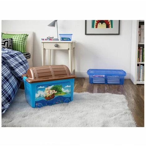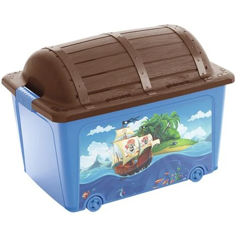 Contenitore Keter W Toy box multiuso. La grande capienza permette di riporre una quantità generosa di giocattoli, mantenendo sempre in ordine la camera dei bambini. Il W Toy Box Style è un vero e proprio forziere del tesoro, grazie all’effetto legno sul coperchio e al dettaglio con la serratura sulle maniglie. Equipaggiato con ruote, per rendere ancora più facile il trasporto. Colore blu. Dimensioni 57x39x43h cm.