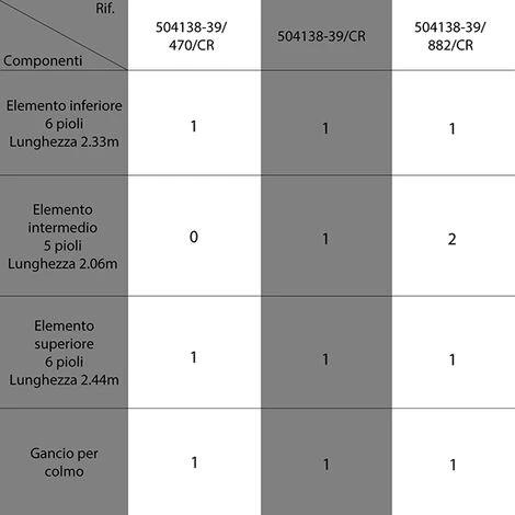 – Pioli piatti 48 x 22mm con interasse di 39cm.
