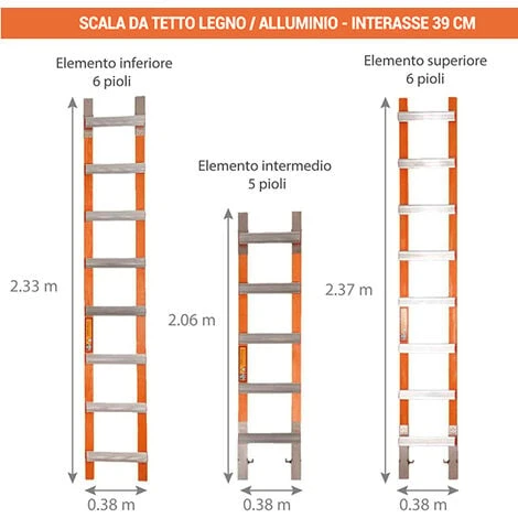 – Larghezza della scala di 38cm.