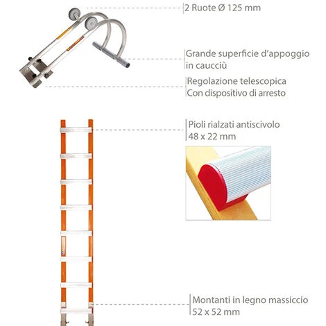 – Scala per tetti piani da avvicinare al tetto: ideale per i lavori di copertura in ardesia.