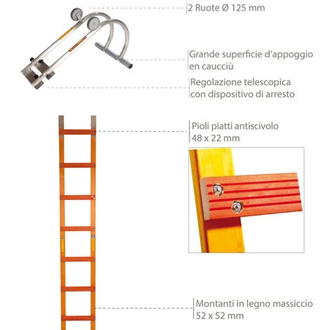 – Scala da tetto piana per avvicinarsi al tetto: ideale per i lavori di copertura in ardesia