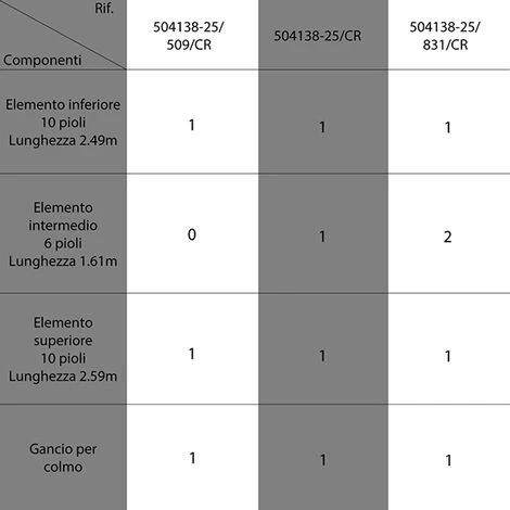 – Pioli piatti 48 x 22mm con passo di 25cm.