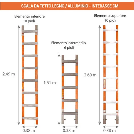 – La scala è composta da 3 elementi che possono essere assemblati facilmente e rapidamente per una lunghezza totale di 6,48 m.