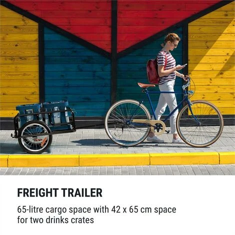 rimorchio per carichi: 65 litri di vano di carico e superficie da 42 x 65 cm per due casse di bibite