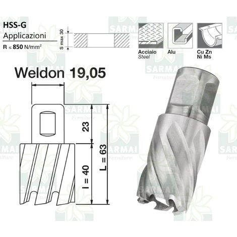 Frese a carotare con attacco Weldon per macchine a supporto