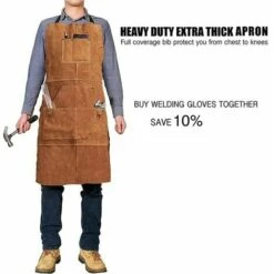 Protezione superiore: Grembiule da saldatura in pelle bovina crosta resistente al calore e alla fiamma. Grembiule extra lungo (61 cm di larghezza x 91,4 cm di altezza) per proteggerti fino al ginocchio durante il lavoro.