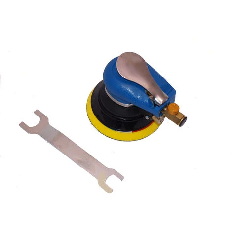 Levigatrice Pneumatica Rotativa Con Regolatore Di Velocita’ – Movimento Rotorbitale A Doppia Azione – Disco Platorello 125mm Con Perno Filettato Da 6mm – Disco Platorello Adatto Per Carta A Strappo – Lunghezza 14cm Attacco Aria Compreso – 140mm Senza Attacco Tubo Aspirazione – Altezza Max 90mm – Peso 980gr – Velocita’ 10.000 Giri/min – Pressione Richiesta 6,2 Bar Chiave Smontaggio In Dotazione